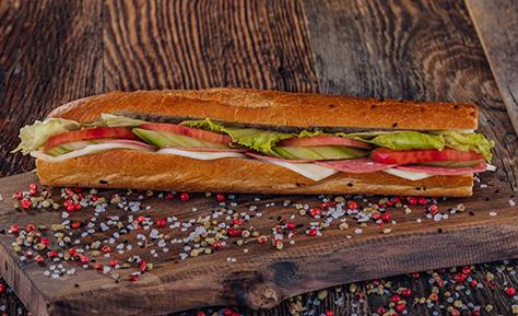Baget ekmek, Salam, kaşar peyniri, domates, yeşillik, salatalık
